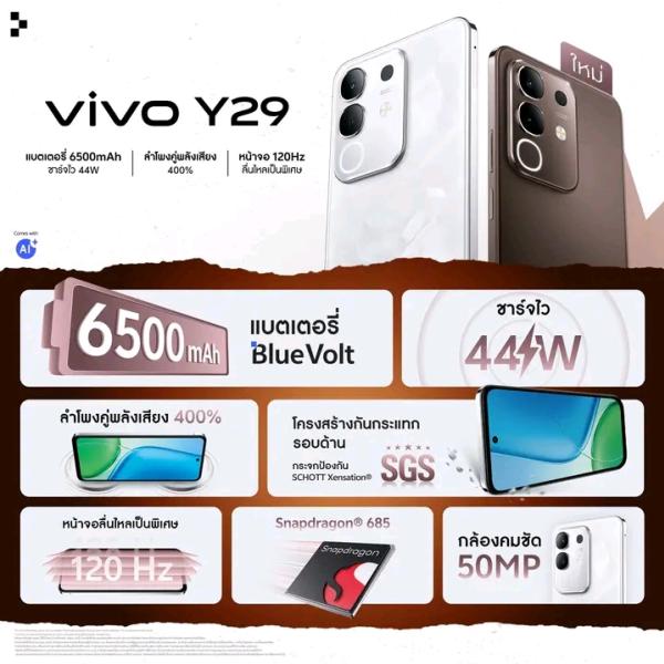 6,999 บาท รวมสเปก ใหม่! vivo Y29 ผ่อนสบาย ทนทาน พร้อมลุยทุกสถานการณ์ 🤍🤎